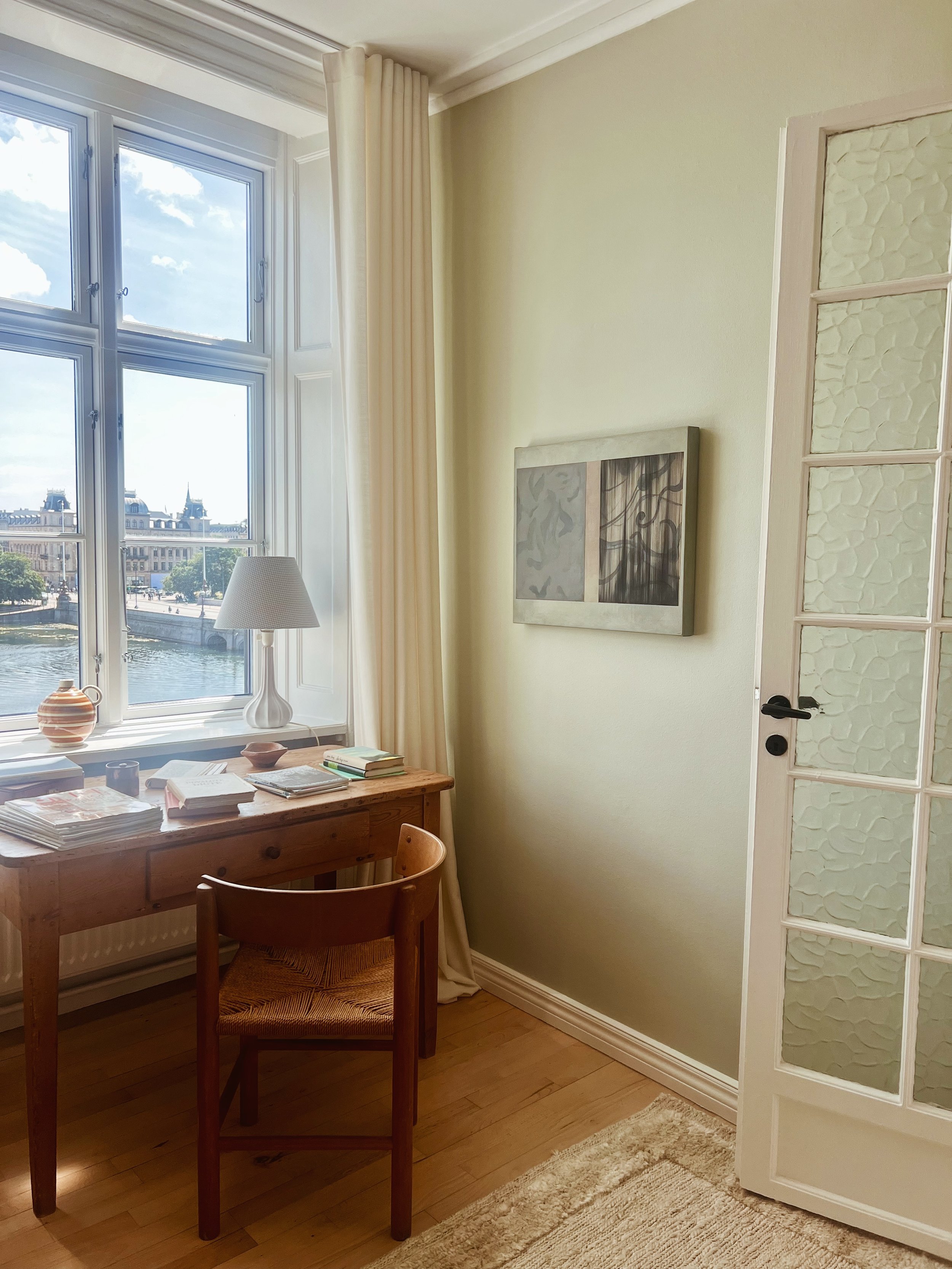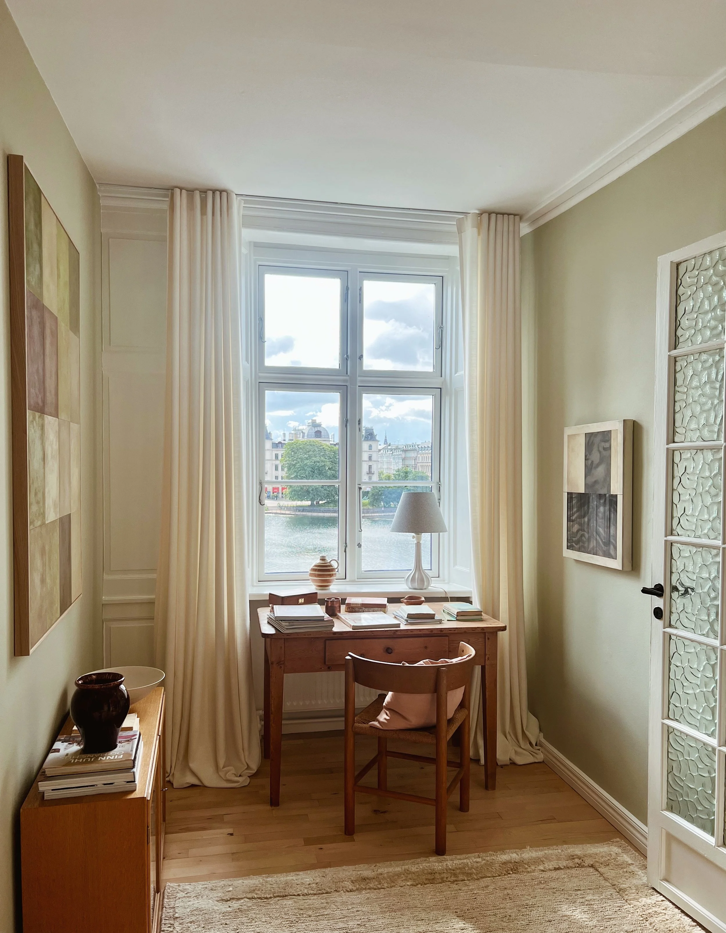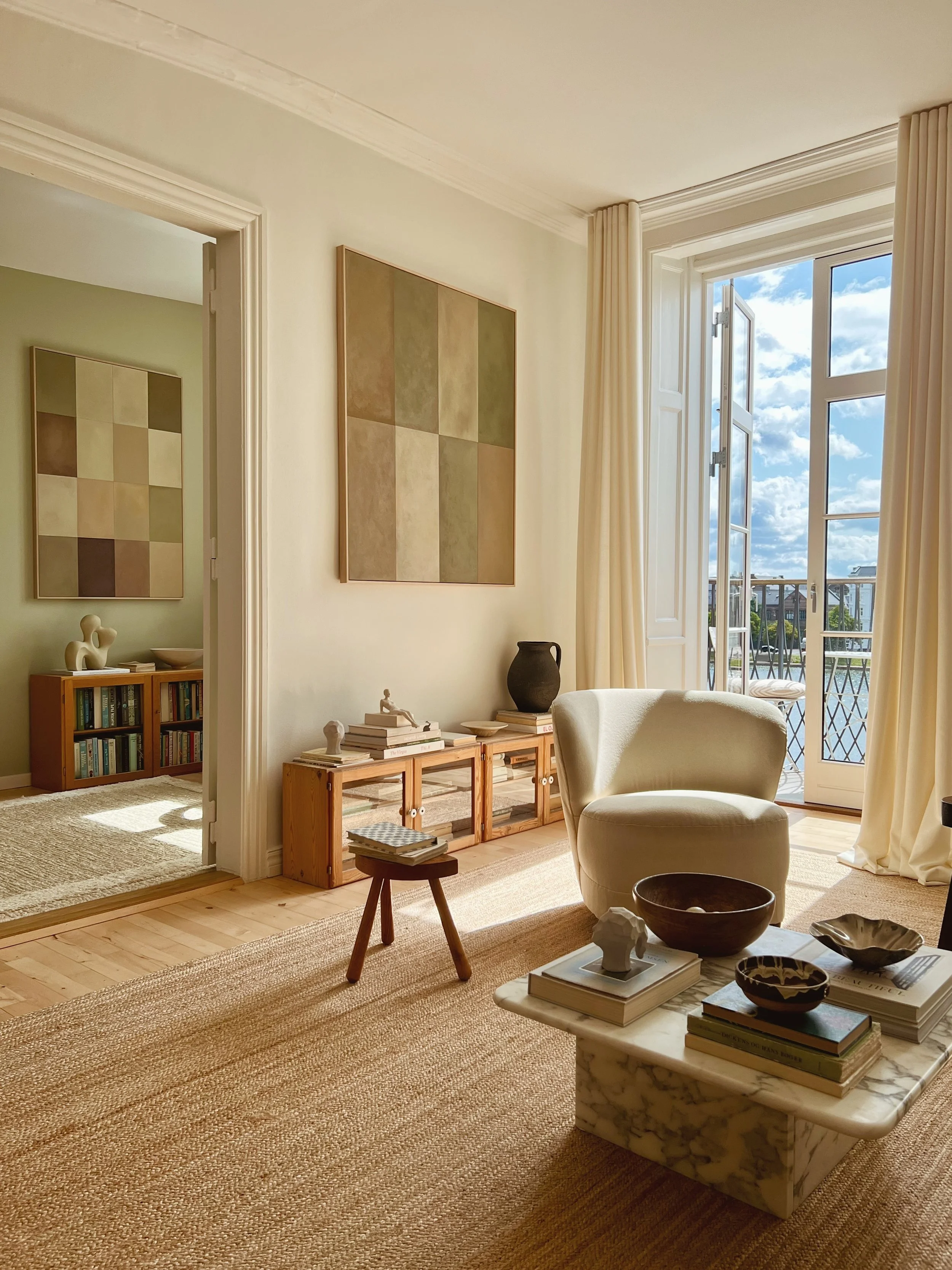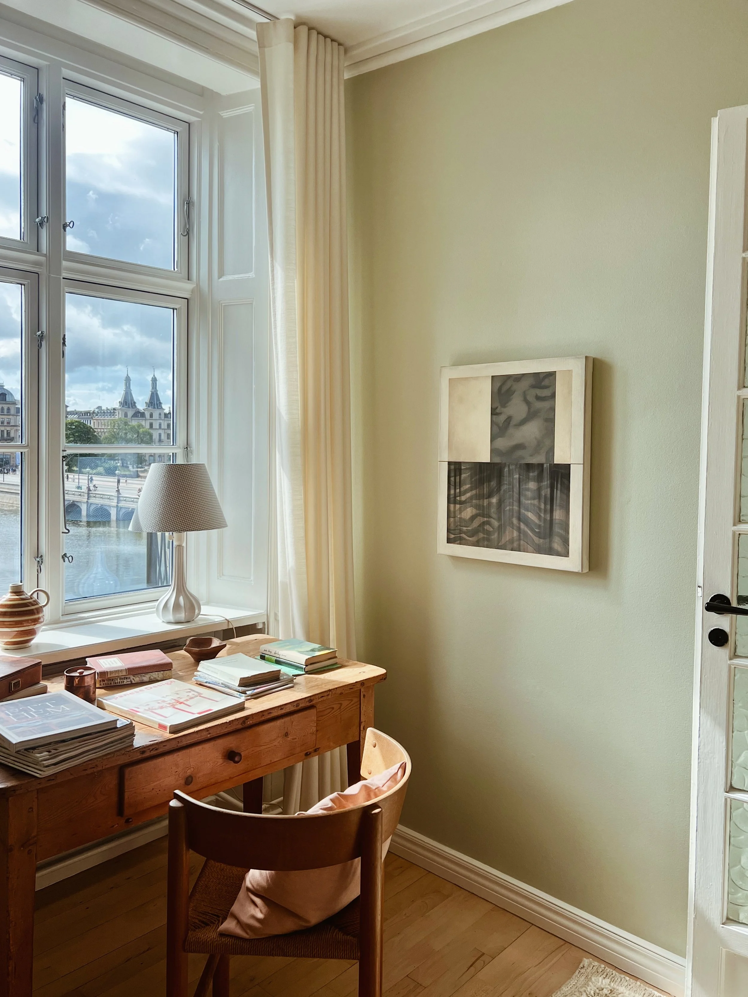 Below you can see some of my latest works up close, within interior or in contrast to each other. The latest release consists of three series. The one I never tire from and that keeps evolving almost invisibly, the series ‘Patches’. And a new exploration of color in the series ‘Originals’, where each square is a field of focus, shadow and depth and small ‘flaws’ are the hidden gems. Like humans they may appear similar, but all the many layers of different paints add a certain unique feel to every single one. As a little new series, there are two smaller works called ‘Cover Up’. Inspired by my love for old patinated books and especially a deep curiosity to how the covers look beneath the paper binding, I have tried to bring out a sense of an old cover on these chunky canvasses painted as if they had years behind them and might hide a lot of stories underneath the ‘Cover Up’.